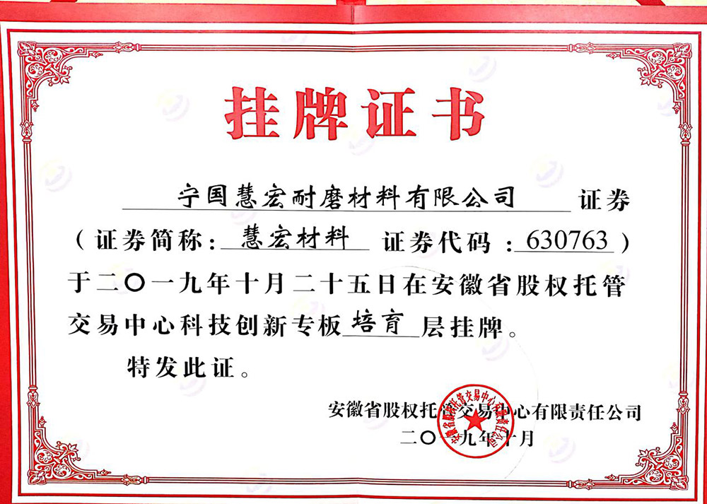 可靠的設(shè)備,才能長久穩(wěn)定運行全面推行ISO9001;2000版質(zhì)量管理體系標(biāo)準,秉承“科學(xué)管理、精心制造、優(yōu)質(zhì)服務(wù)、追求卓越”的質(zhì)量方針,不斷打造高端耐磨材料產(chǎn)品。